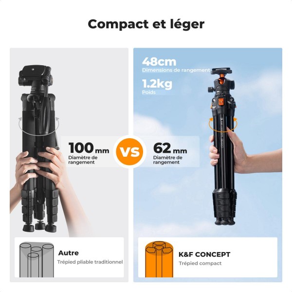K&F Trepied Alu + rotule 40mm Charge 10kg