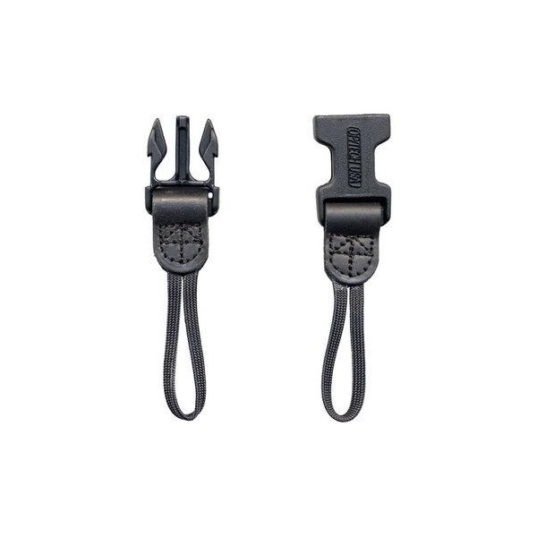 Lot de deux connecteurs (mâle et femelle) permettant d’utiliser appareils-photo et jumelles avec sangles de cou, bracelets ou harnais OPTECH. Fabriqués en nylon avec onglets en cuir pour robustesse et confort.
