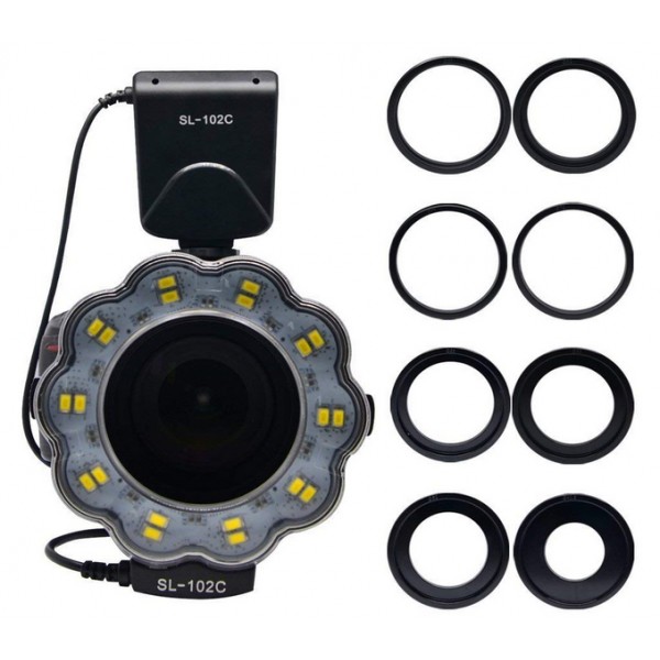 Le flash annulaire MCOPLUS SL102 avec écran à Led et diffuseur de flash est spécialement conçu pour la photo macro, la recherche scientifique,la photographie médicale ...