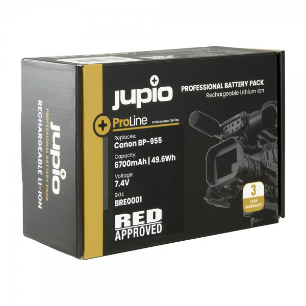 Le Jupio ProLine BP-955 pour RED (BRE0001) est une batterie premium d'une capacité de 6700mAh / 49.6Wh. Cette batterie est officiellement approuvée par RED et convient à 100% pour une utilisation avec la caméra de cinéma numérique RED Komodo 6K. La puce intégrée prend en charge toutes les fonctions du RED Komodo 6K. Cela fait de Jupio l'un des rares fabricants à proposer une batterie 100% fonctionnelle et approuvée pour ce caméscope haut de gamme.