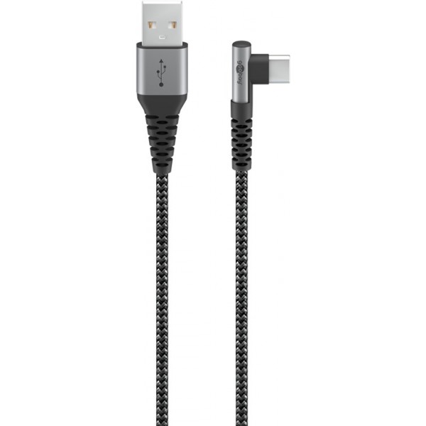 Câble Textile USB-C™ vers USB-A avec Fiches Métalliques (Gris Sidéral/Argent), 90°, 2 m